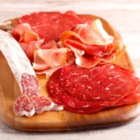 - Vorbereitung der Wurstwaren: Schneide den Pršut, Kulen, Pečenica und Vrat in dünne Scheiben. Lege die Scheiben auf einem Servierteller oder eine Platte und lasse dabei etwas Platz für den Käse.